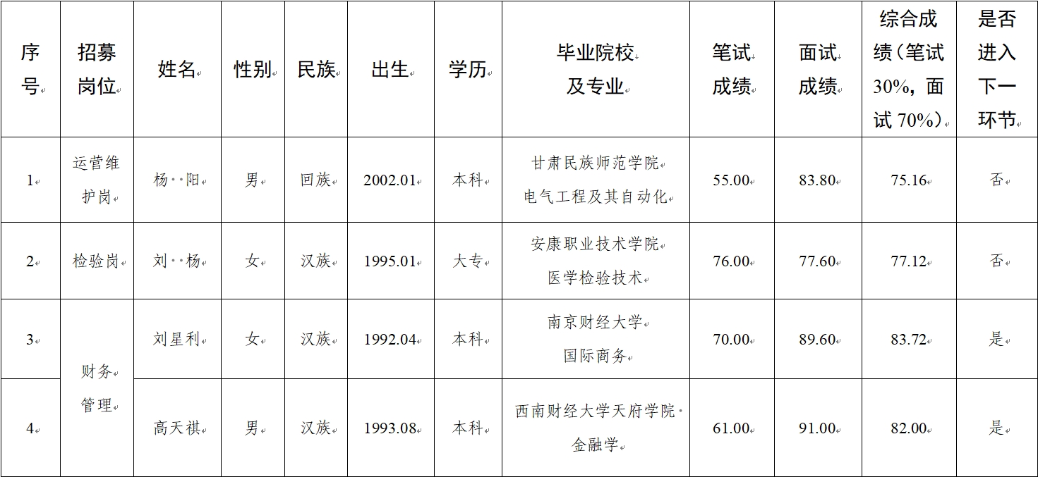 水建公司、新能源公司、医疗科技公司社会招聘人员笔试、面试成绩公示